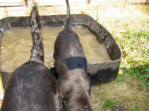| ... zu zweit passen wir auch in den Pool | ... Badezeit zu Ende, Frauchen ruft :) |